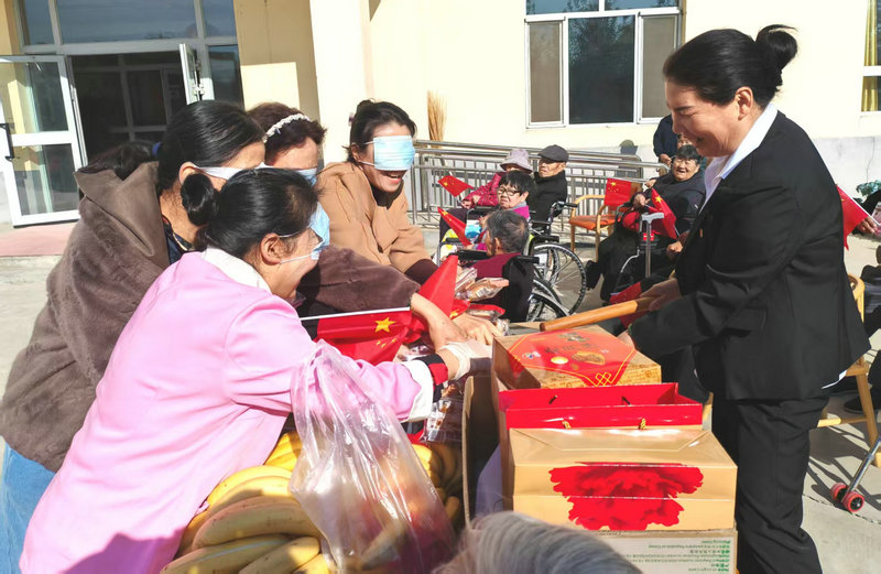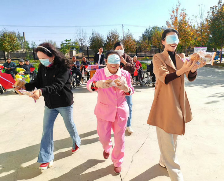 圖4為:第六師奇臺110團社區(qū)吾家樂寶養(yǎng)老院院長史云智(左一),在中秋佳節(jié)組織員工們與長者、家屬開展趣味互動游戲,歡聲連連。