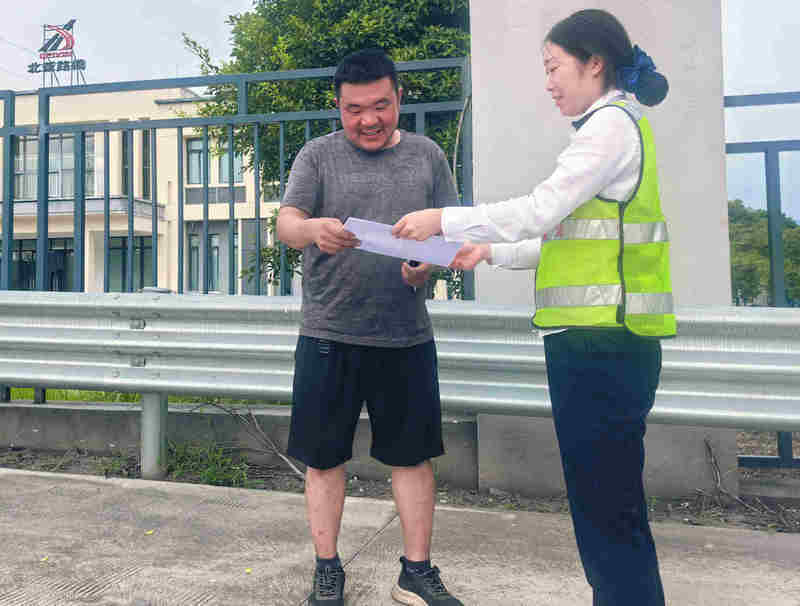 9月2日,一輛小型轎車下道后停留在渝長復(fù)線高速八顆收費(fèi)站出口廣場有一段時(shí)間沒有移動(dòng)。這一異常情況被收費(fèi)班長藍(lán)心佚發(fā)現(xiàn)后,她立刻快步上前,主動(dòng)向車內(nèi)司機(jī)詢問情況。當(dāng)?shù)弥緳C(jī)是接到公司電話急需復(fù)印一份資料時(shí),她向司機(jī)要了資料后立刻轉(zhuǎn)身朝著收費(fèi)站辦公樓的方向快步跑去。片刻之后,她抱著復(fù)印好的資料匆匆返回說道:“這是給您復(fù)印的資料,請(qǐng)您拿好。”聽到這番話,再看著手中的復(fù)印資料,司機(jī)緊緊握住藍(lán)心佚的手,語氣里滿是感激,連聲道謝:“本來以為今天在高速路口不方便,真沒想到你們能幫我復(fù)印資料,太貼心了!” 簡單的話語,滿是對(duì)收費(fèi)站工作人員暖心服務(wù)的認(rèn)可與感動(dòng)。