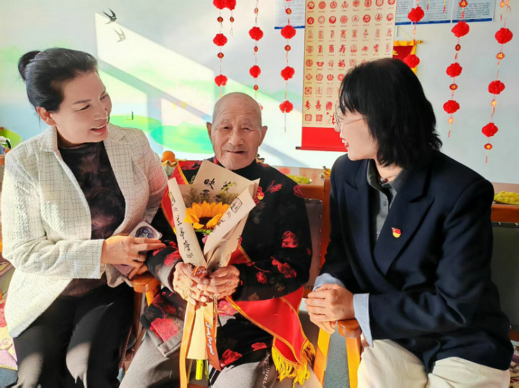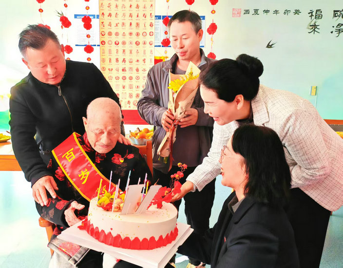 今年是新疆維吾爾族自治區(qū)成立70周年,10月份又逢全國開展“敬老月”活動。為了讓“百歲壽星老寶貝”李爺爺感受到全社會的關心與關愛,10月18日,三十里大墩社區(qū)、六師奇臺農場110社區(qū)吾家樂寶養(yǎng)老院、三十里大墩醫(yī)療服務中心等精心籌備,以獨特的“生日會”形式,共同陪伴李文生老爺爺?shù)淖优?,為李文生老爺爺過“百歲生日”。在“百歲生日會”中,三十里大墩社區(qū)王娜書記親自為李爺爺佩戴黨徽,李爺爺收到了大家贈送的生日禮品,滿臉洋溢著幸福的笑容,與大家共同分享生日蛋糕,百歲老人、第一代兵團建設者李文生老爺爺度過了一個非凡的“期頤之壽”。