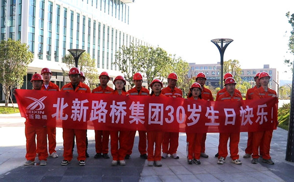 南平訊(通訊員 馬軼鋒)10月24日,福建分公司武夷新區(qū)市政項目員工在已建成商務(wù)工程前集體祝福北新路橋集團成立30周年。