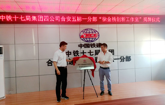 4月27日,中鐵十七局四公司創(chuàng)新工作室——“徐金桃創(chuàng)新工作室”在合安五標一分部舉行揭牌儀式。