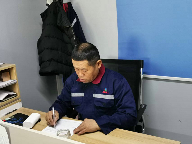 圖為:靳秀軍正在備戰(zhàn)決賽