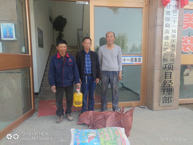 為了關(guān)愛一線勞務(wù)工,體現(xiàn)企業(yè)的人文關(guān)懷,五一勞動節(jié)期間,中鐵二十一局四公司張扁高速公路項目部為參建的27家勞務(wù)隊上百名勞務(wù)工送去了豬肉、面粉、食用油等慰問品;其中項目部有2家勞務(wù)隊是少數(shù)民族人員,項目部送去了羊肉、面粉、食用油。