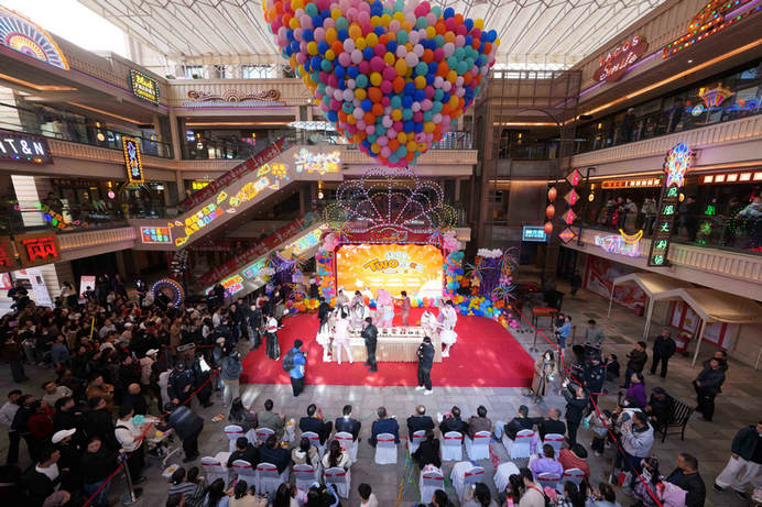 活動現(xiàn)場,印象1923街區(qū)先后開展了精彩紛呈的周年慶巡游與暖場活動,項(xiàng)目原創(chuàng)歌曲《泰和里之歌》在活動中首次正式亮相。同時(shí),中鐵·泰和里街區(qū)為多家代表商戶舉行授牌儀式并致贈鮮花,感謝商戶兩年來的攜手同行。隨后,主持人邀請商戶代表、會員代表、粉絲代表及與泰和里同月生日的“壽星”嘉賓共同登臺,一同切開巨型慶典蛋糕,現(xiàn)場氛圍溫馨熱烈。18時(shí)30分,數(shù)千只彩色氣球組成的“氣球雨”驚艷亮相,以震撼的視覺效果打造鮮明品牌記憶點(diǎn),成為現(xiàn)場關(guān)注焦點(diǎn)。