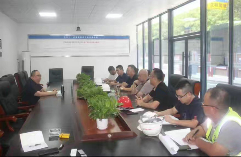 總承包部指揮長李兵(左1)組織召開18標項目優(yōu)化施工方案會議