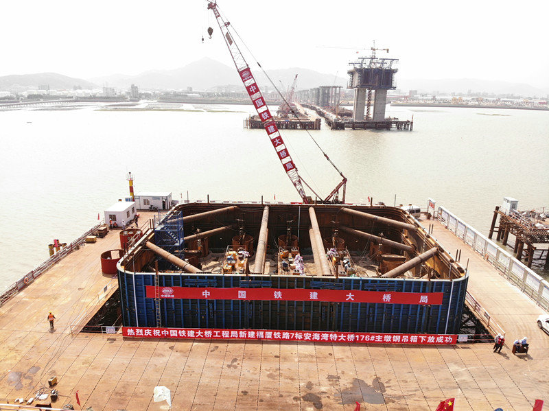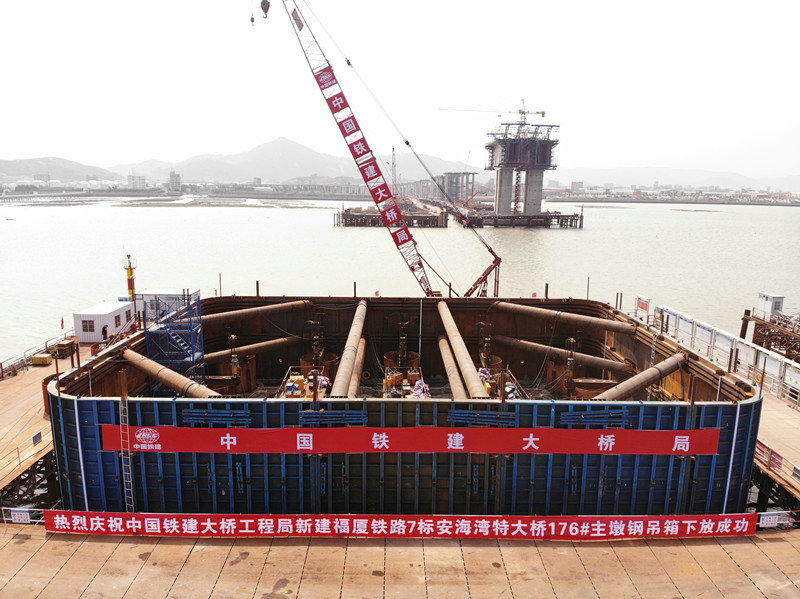 5月5日下午,新建福廈鐵路7標(biāo)項目安海灣特大橋176#主墩鋼-混組合吊箱成功下放,下一步將開始主墩承臺施工,標(biāo)志著安海灣特大橋主墩施工邁入新的階段。176#主墩鋼-混組合吊箱是福廈7標(biāo)首個下放的鋼-混組合吊箱,為后續(xù)鋼-混組合吊箱下放施工提供了成功經(jīng)驗和良好基礎(chǔ)。