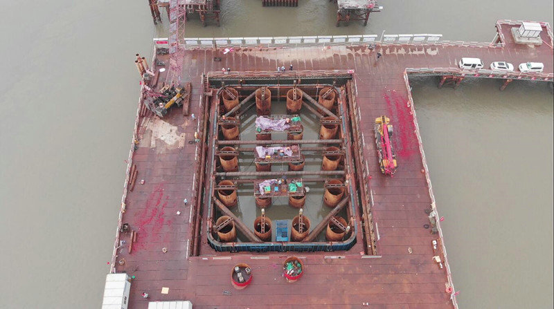 整個鋼-混組合吊箱下放準(zhǔn)備工作歷時20天,期間項目人員精心準(zhǔn)備,數(shù)次召開專題研討會,對吊箱下放前準(zhǔn)備工作及可能遇到的風(fēng)險和難題進(jìn)行精心研討和部署。鋼-混組合吊箱下發(fā)過程中項目人員精細(xì)分工,嚴(yán)密監(jiān)控,保證了鋼-混組合吊箱的順利下發(fā)。