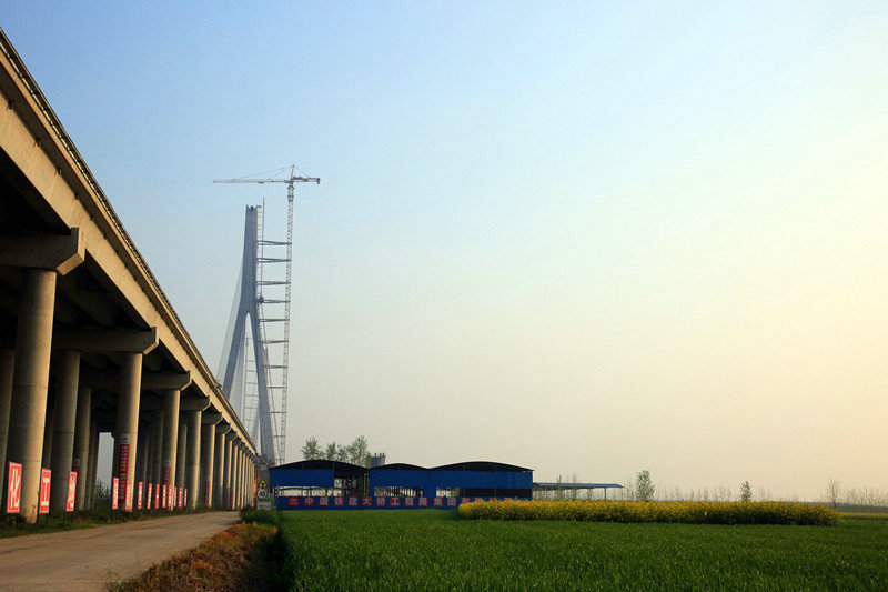 石首長(zhǎng)江大橋全長(zhǎng)12.2公里,為雙塔斜拉橋,一跨820米飛躍長(zhǎng)江天塹,大橋跨度位居世界第七,綜合施工難度位居世界同類橋梁前列。