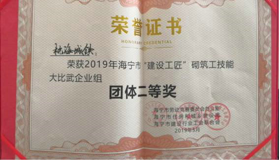 5月5日,海寧市組織開展2019年度“建設(shè)工匠”砌筑工技能比武大賽,中鐵一局建安公司杭海城際鐵路項目選派3支砌筑代表隊參賽,并奪得企業(yè)組團體賽二等獎榮譽,三支參賽隊伍均獲得企業(yè)組三等獎榮譽。