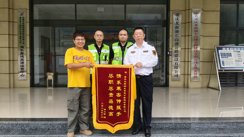 2025年10月17日,貨車司機(jī)蔣師傅專程驅(qū)車來到重慶兩江新區(qū)分公司(運(yùn)營公司)所屬渝長復(fù)線高速辦公區(qū),將一面印有“情系乘客伸援手 盡職盡責(zé)品質(zhì)高”的錦旗鄭重交到公司工作人員手中,再三感謝“國慶、中秋”假日期間公司路巡人員在其行駛渝長復(fù)線高速時,車輛拋錨后給予的及時救助。?