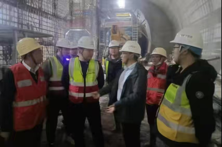 總承包部副指揮長李燕斌(右3)深入中梁山隧道現(xiàn)場檢查督導(dǎo)