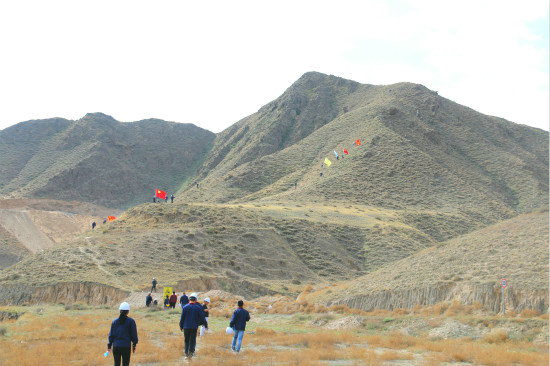 徒步現(xiàn)場(chǎng)旗幟飄揚(yáng)