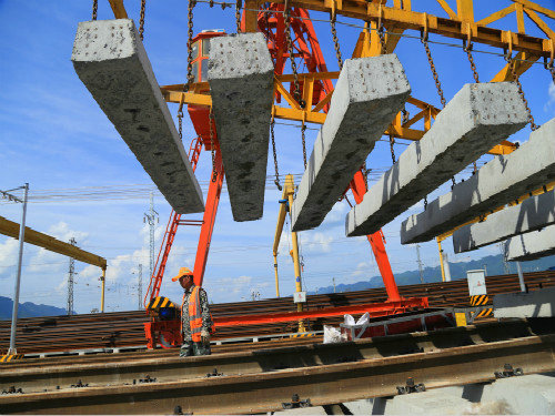 軌枕吊裝有序進(jìn)行