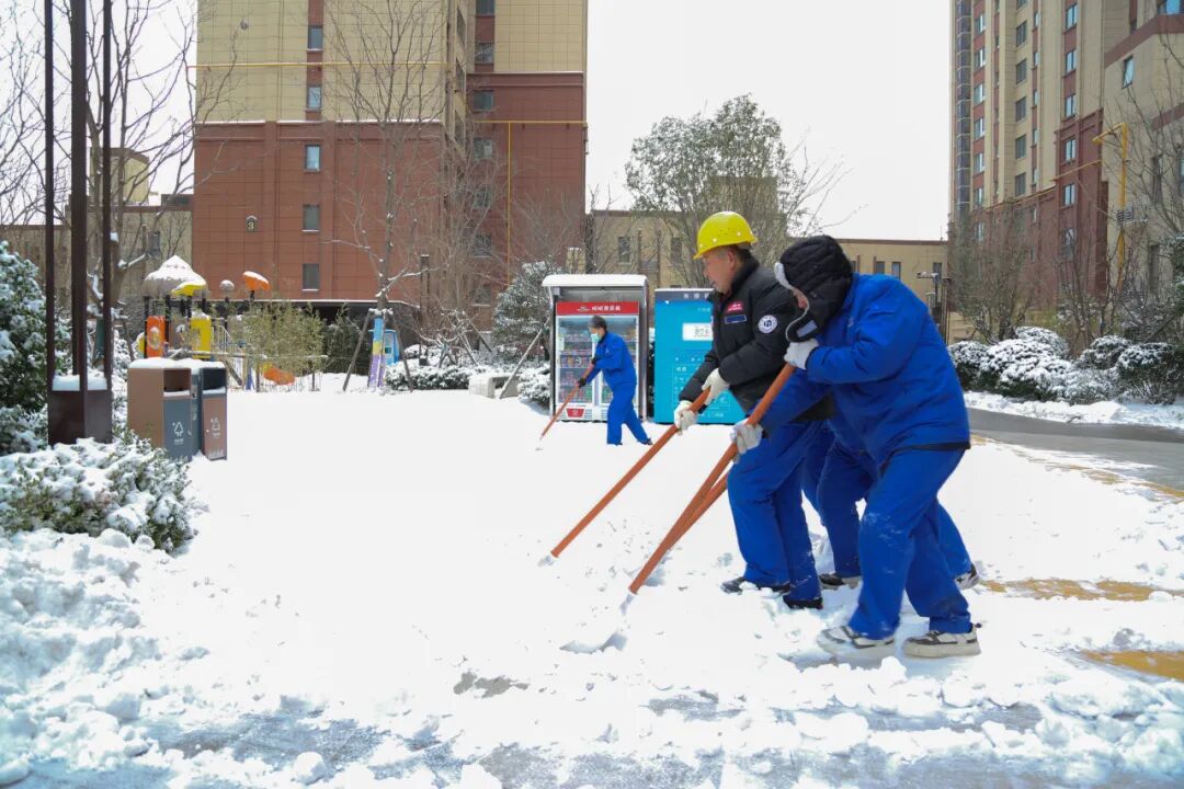 美景相伴,責(zé)任在肩。雪情就是命令,暢通就是目標,中鐵中產(chǎn)置業(yè)公司各項目延續(xù)往年優(yōu)良作風(fēng),以“雪”為令、聞雪而動,迅速進入應(yīng)急狀態(tài),中鐵·泰和府、中鐵·泰和里項目首當其沖,第一時間組織員工開展掃雪除冰工作。