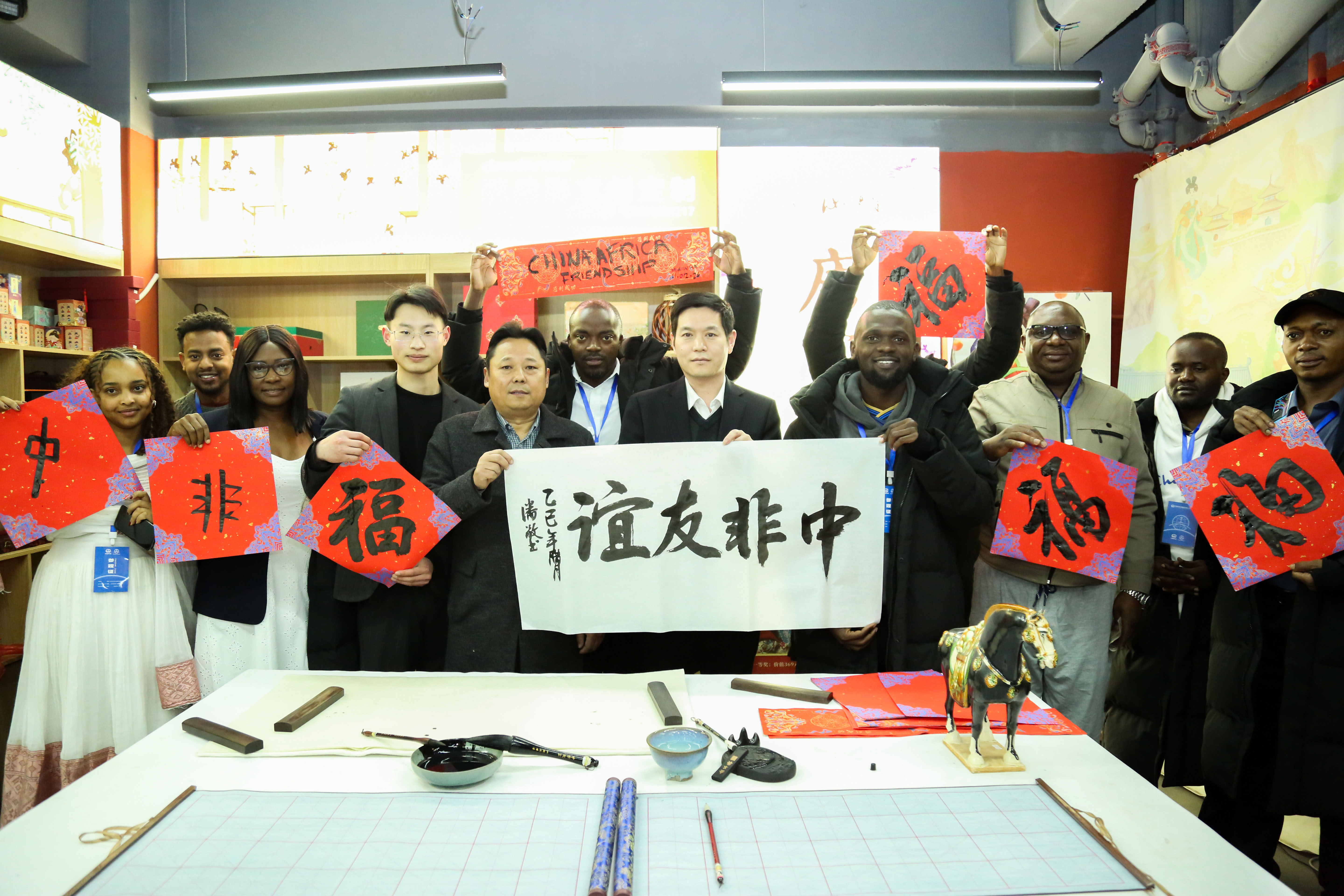 體驗(yàn)環(huán)節(jié)中,外籍友人們興致盎然地參與非遺毛筆書寫,在筆墨流轉(zhuǎn)間體悟中華傳統(tǒng)文化的博大精深。一筆一畫間,“中非友誼”四個蒼勁有力的漢字躍然紙上;在特色老字號展館,他們駐足深入了解中原民俗文化內(nèi)涵。夜幕降臨,《國樂新編》《儺戲祈?!返忍厣菟囕喎涎?,《王府招胥》、《篝火聯(lián)歡》等環(huán)節(jié)點(diǎn)燃現(xiàn)場氛圍,中外人士載歌載舞、親切互動,歡聲笑語間拉近了心與心的距離,定格下中非民心相通的溫馨瞬間。