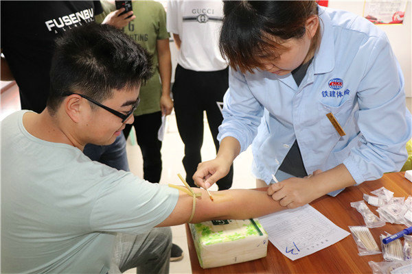 8名鐵建醫(yī)院醫(yī)生組成的醫(yī)療隊為一線項目部工作人員提供了健康體檢和職業(yè)健康體檢服務,并及時將個人體檢報告反饋給員工本人。此次體檢內(nèi)容包括物理檢查、眼科、口腔、血常規(guī)、肝腎功能、心電圖、胸部DR、彩超、泌尿生殖系統(tǒng)等23種項目,體檢內(nèi)容全面詳細。