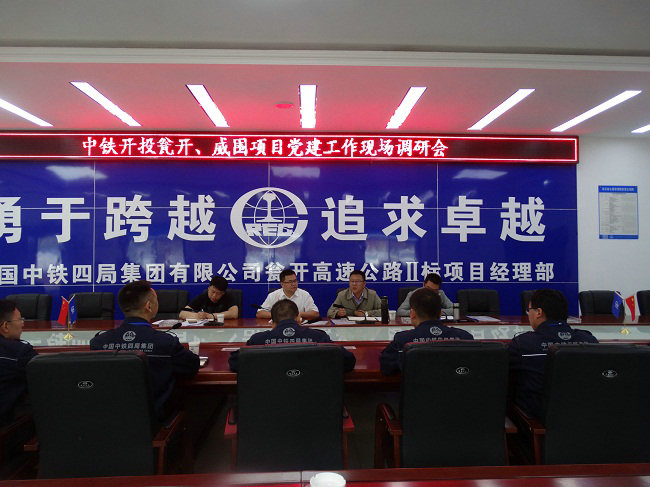5月19日上午,中鐵開(kāi)投甕開(kāi)、威圍高速指揮部聯(lián)合黨工委書記陳勇、副書記苑慶鋒、紀(jì)工委書記、副指揮長(zhǎng)葉志賓一行,蒞臨中鐵四局甕(安)—開(kāi)(陽(yáng))高速公路Ⅱ標(biāo)項(xiàng)目部召開(kāi)聯(lián)合黨建工作調(diào)研會(huì),項(xiàng)目經(jīng)理、書記及全體黨員陪同調(diào)研。