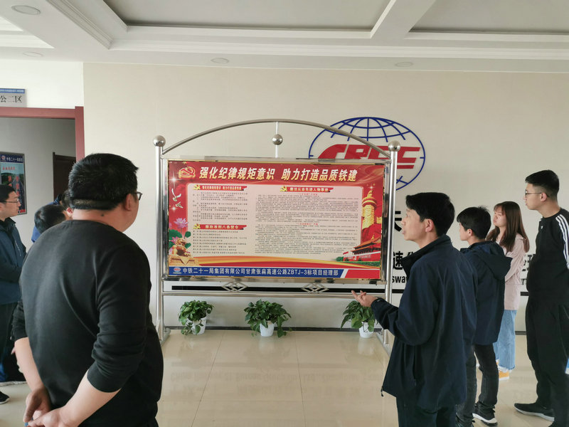 會(huì)議結(jié)束后,項(xiàng)目部還組織全體黨員參觀廉潔從業(yè)宣傳展板。