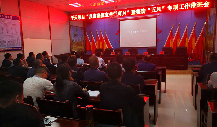推進會上,集中傳達學習了集團公司《關于開展整飭“五風”強化政治擔當專項工作的通知》、三公司紀委《關于開展反腐倡廉宣傳教育月活動的通知》等文件精神,并對整飭“五風”、反腐倡廉宣傳月活動做了全面的安排部署,要求項目全體職工要結合活動內容,認真對照反思,撰寫心得體會,不斷提高自身修養(yǎng)和廉潔意識。同時組織職工觀看了《巨額虧損背后》警示教育片,通過觀看用事實證明了,那些沒有底線,沒有規(guī)矩,思想褪色,信仰缺失的人,必然會滑向貪腐的深淵。
