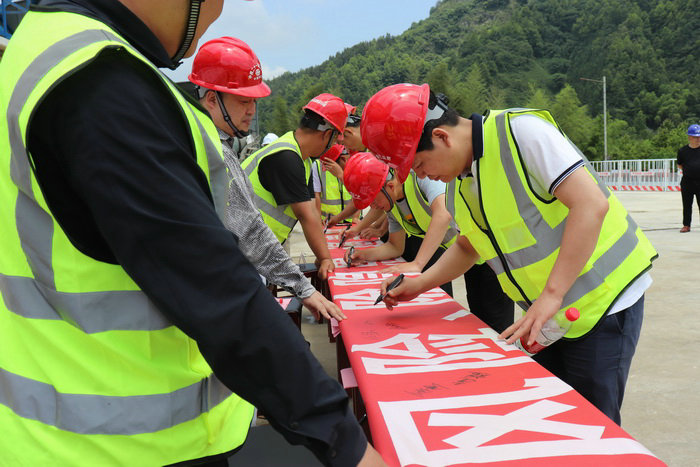 最后項(xiàng)目總工孫杰帶領(lǐng)大家進(jìn)行安全生產(chǎn)月宣誓,參加啟動(dòng)儀式上全體人員在“防風(fēng)險(xiǎn) 除隱患 遏事故”條幅上簽下了自己的名字,對(duì)強(qiáng)化紅線意識(shí),落實(shí)安全責(zé)任,促進(jìn)安全生產(chǎn)月深入開展起到了積極的推動(dòng)作用。