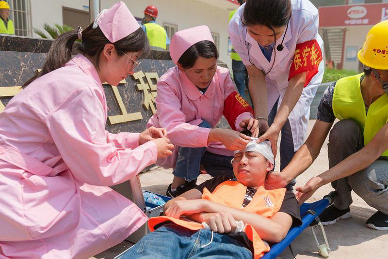 當(dāng)日下午2點(diǎn),演練正式開始。項(xiàng)目經(jīng)理收到宿舍內(nèi)突然發(fā)生電氣火災(zāi)的報(bào)告,項(xiàng)目部立即啟動應(yīng)急預(yù)案進(jìn)行救援。參與演練所有人員按照所劃分的各小組,整齊站隊(duì),各司其職,緊密配合,傳遞信息,有效控制火情,疏散人群,將損失降到最低。在消防演練結(jié)束后,龍華鎮(zhèn)醫(yī)務(wù)工作人員為大家講授燒傷、一氧化碳中毒急救知識,并由消防專家為大家講解干粉滅火器的性能及使用方法。隨后,項(xiàng)目部組織員工聯(lián)合武漢大通監(jiān)理公司舉行全生產(chǎn)月活動啟動儀式,并號召現(xiàn)場人員在宣傳條幅上簽字。