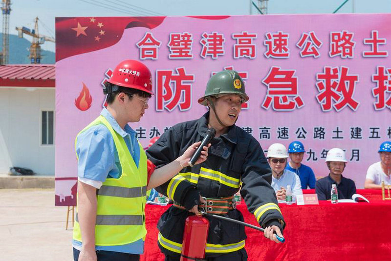 合璧津高速公路土建五標(biāo)項(xiàng)目舉行消防應(yīng)急演練暨安全生產(chǎn)月活動啟動儀式