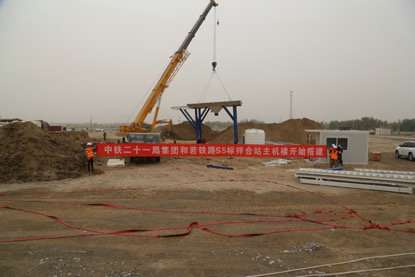 6月4日上午,隨著一聲聲的鞭炮響起,中鐵二十一局四公司新疆和若鐵路項(xiàng)目部拌合站主機(jī)樓開始搭建。