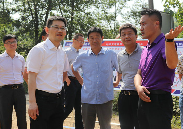 圖為項目經(jīng)理張一平(右一)向楊副市長(左二)介紹施工情況 針對項目當(dāng)前面臨的資金、征遷等突出問題,楊副市長語重心長地說,要結(jié)合前期各項準備工作,多想辦法,開闊思路,想方設(shè)法,突出重點,狠抓落實。同時,加大溝通協(xié)調(diào)力度,補齊征地拆遷中的短板,盡快打開施工局面,要轉(zhuǎn)變觀念,好事多磨,多方創(chuàng)效,發(fā)揚“人心齊泰山移”的精神,發(fā)揮優(yōu)勢。項目經(jīng)理張一平表示,將按照市領(lǐng)導(dǎo)要求,結(jié)合實際,克服眼前的困難,從大局著想,緊密配合業(yè)主工作,高標準起步,為黃山人民交出一項優(yōu)質(zhì)工程。項目駐地辦、鄉(xiāng)、鎮(zhèn)領(lǐng)導(dǎo)陪同檢查調(diào)研。