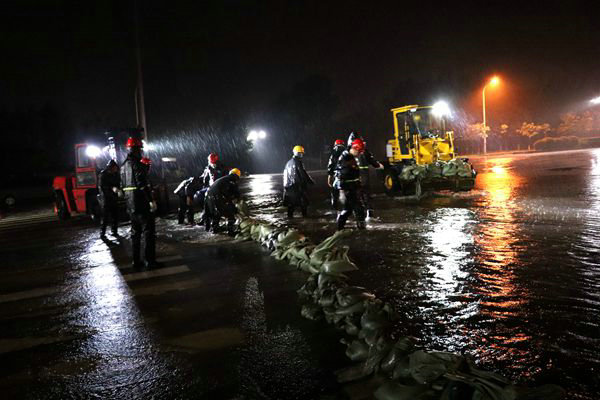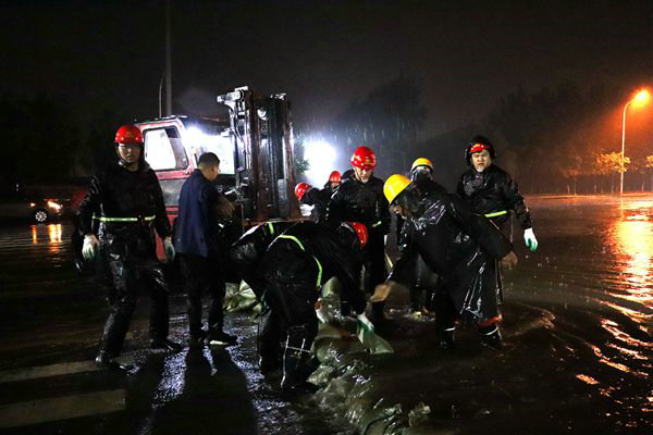 道路積水越來越深,處理不好將直接影響基坑安全,好在項(xiàng)目部對(duì)防汛應(yīng)急物資準(zhǔn)備充分,防汛措施得力,人員到位,使搶險(xiǎn)工作達(dá)到了忙而不亂的效果。在汽車公園站北區(qū),只見裝載機(jī)在大雨中來回穿梭,盾構(gòu)工區(qū)經(jīng)理劉漢洲、李原在現(xiàn)場(chǎng)帶領(lǐng)搶險(xiǎn)隊(duì)員不停的裝沙袋、碼沙袋,質(zhì)檢部部長(zhǎng)汲生財(cái)一邊負(fù)責(zé)指揮環(huán)島的搶險(xiǎn),一邊協(xié)調(diào)指揮汽車公園站的搶險(xiǎn)隊(duì)員。工區(qū)經(jīng)理蘇曉亮帶領(lǐng)30多名搶險(xiǎn)隊(duì)員奮戰(zhàn)在捷達(dá)大路站。尤其讓人感動(dòng)的是,駐地監(jiān)理工程師車振宇、李紅成等同志也和搶險(xiǎn)隊(duì)員一起并肩戰(zhàn)斗在搶險(xiǎn)現(xiàn)場(chǎng),他們這種對(duì)工作認(rèn)真負(fù)責(zé)的態(tài)度和無私奉獻(xiàn)的精神,極大地鼓舞著每個(gè)搶險(xiǎn)隊(duì)員的士氣。在搶險(xiǎn)過程中,有的隊(duì)員雨鞋被水灌滿了、衣服濕透了,但是,卻自始至終沒有一個(gè)退縮的。