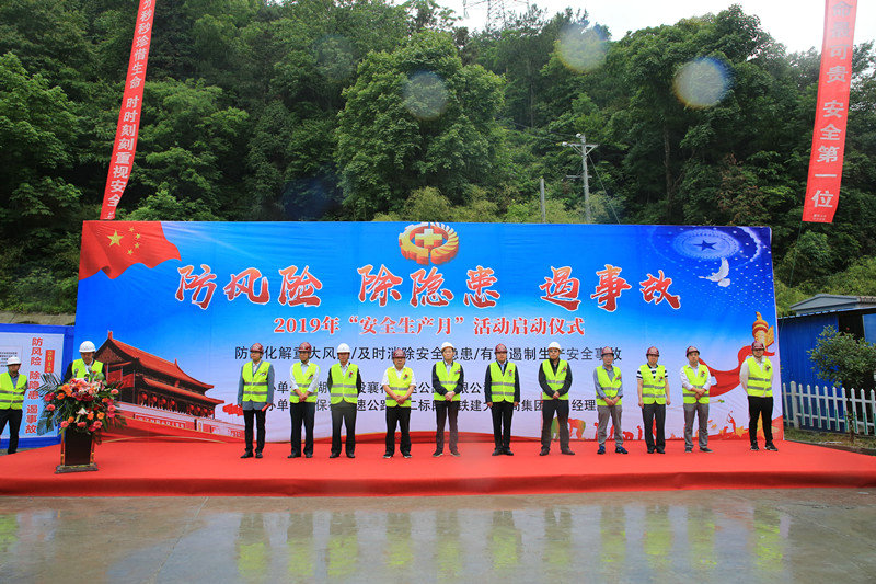 5月30日上午,一公司保神高速二標(biāo)項(xiàng)目承辦的湖北交投襄神公司項(xiàng)目群2019年“安全生產(chǎn)月”啟動(dòng)儀式順利舉行,襄陽(yáng)市應(yīng)急管理局局長(zhǎng)秦雙斌、湖北交投安全管理部部長(zhǎng)張學(xué)明、襄神公司主要領(lǐng)導(dǎo)出席儀式。保神高速、棗潛高速南段、棗潛高速北段、襄陽(yáng)繞城高速17家單位150余人參加儀式,一公司安全總監(jiān)矯禎宇代表參建單位表態(tài)發(fā)言。