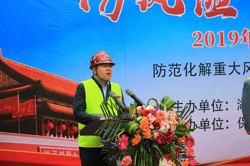 襄陽(yáng)市應(yīng)急管理局局長(zhǎng)秦雙斌發(fā)表致辭,他表示近年來,通過各級(jí)各部門和廣大生產(chǎn)經(jīng)營(yíng)單位及全社會(huì)的共同努力,呈現(xiàn)經(jīng)濟(jì)快速發(fā)展事故穩(wěn)定下降,形勢(shì)總體穩(wěn)定的良好局面,但在一些重點(diǎn)施工領(lǐng)域安全意識(shí)比較薄弱,企業(yè)主體責(zé)任落實(shí)不夠的現(xiàn)象仍然時(shí)有發(fā)生,安全生產(chǎn)工作事關(guān)人民群眾生命財(cái)產(chǎn)安全,事關(guān)家庭幸福和社會(huì)和諧穩(wěn)定。我們一定要牢固樹立以人民為中心的發(fā)展思想,不忘初心,做到常態(tài)化的宣傳教育,高強(qiáng)度的監(jiān)管執(zhí)法,嚴(yán)厲的事故責(zé)任追究,為建國(guó)70周年?duì)I造和諧穩(wěn)定的發(fā)展環(huán)境。