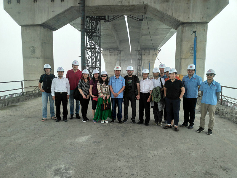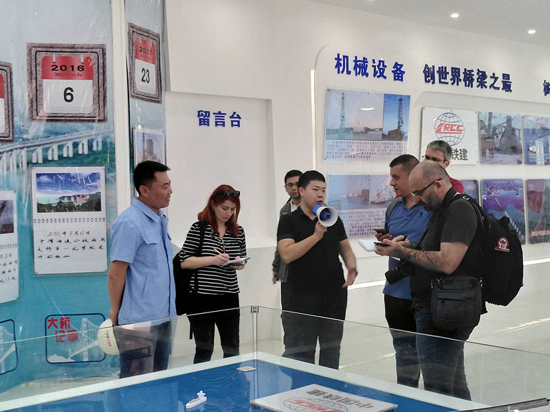 近日,在福建省政府外事辦相關負責人的帶領下,土耳其主流媒體記者代表團一行15人,對福平鐵路平潭海峽公鐵兩用大橋項目一公司工區(qū)施工現場進行實地采訪。