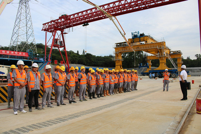 為確保首榀箱梁順利澆筑,梁場項目領導班子召開施工部署會,精心組織、細化分工、分解任務、保證施工過程環(huán)環(huán)相扣。晉江制梁場項目部上場以來,班子成員發(fā)揮帶頭作用,帶領項目部全體員工克服征地拆遷難,臨建工程難度大等困難,不畏艱難、超前謀劃、統(tǒng)籌安排,對梁場施工任務不斷進行調整。同時,認真加強對一線工人的崗前技術交底、安全培訓,嚴把過程質量控制,確保了首榀箱梁的順利灌注,為晉江制梁場箱梁批量生產奠定堅實基礎。