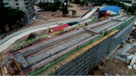 6月14日下午16時,隨著最后一方混凝土的灌注,中鐵建大橋工程局一公司福州二環(huán)項目E匝道首聯(lián)現(xiàn)澆梁混凝土澆筑完成,圓滿實現(xiàn)了預期目標,為G、H匝道施工奠定良好的開端。