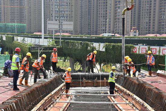 6月14日下午16時(shí),隨著最后一方混凝土的灌入,福州二環(huán)項(xiàng)目E匝道首聯(lián)現(xiàn)澆梁混凝土宣告澆筑完成。此聯(lián)的澆筑圓滿實(shí)現(xiàn)了預(yù)期目標(biāo),鼓舞了團(tuán)隊(duì)士氣,為接下來G、H匝道的大干快上奠定了良好的開端。