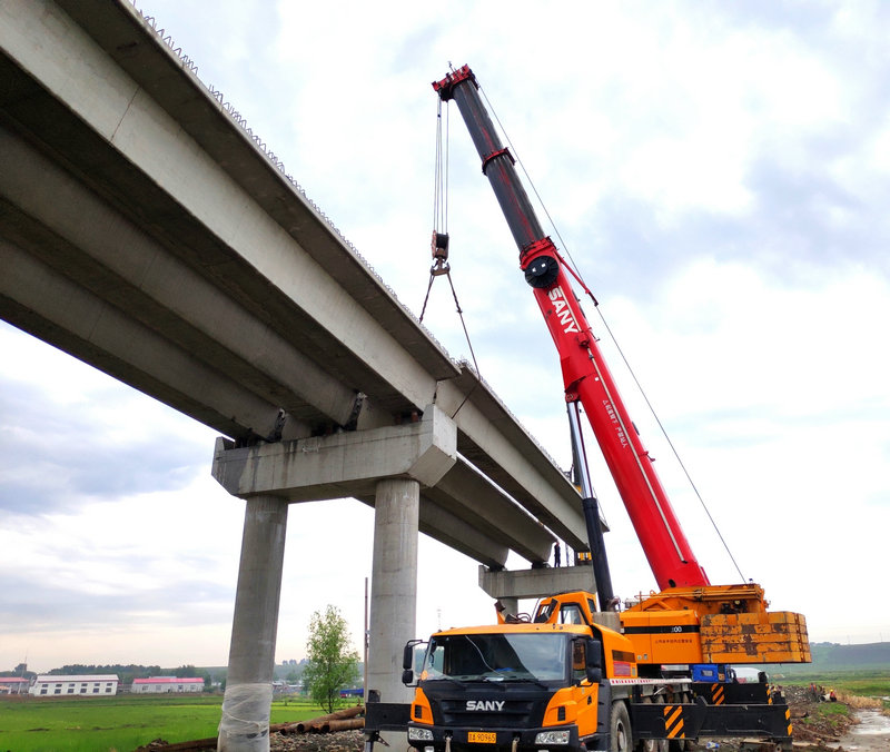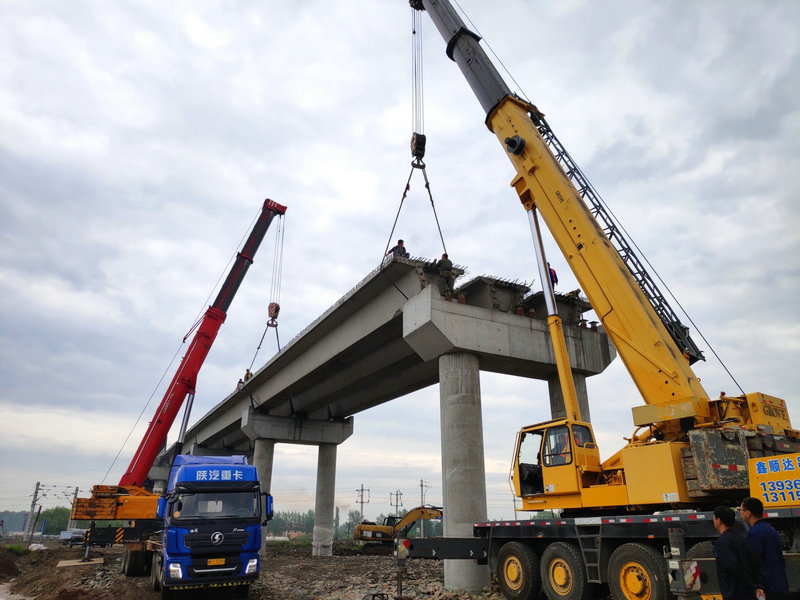 承擔施工任務(wù)的中鐵二十三局二公司哈牡電氣化項目部,克服了雨水頻繁、箱梁運距遠、高空作業(yè)施工難度大等不利因素。項目部嚴格落實架梁標準化作業(yè)程序和施工組織方案不走樣,對施工技術(shù)標準、作業(yè)要點以及安全、質(zhì)量控制措施進行了詳細交底,做到任務(wù)部署到位,施工人員安排到位,技術(shù)人員指導(dǎo)到位,管理人員監(jiān)督到位、安全措施保證到位。同時項目部加大了機械設(shè)備配置力度,調(diào)集了450噸和260噸兩臺大型汽車吊,并提前進行了吊車站位和地基承載力試驗,確保了安全萬無一失。經(jīng)過全體參戰(zhàn)職工的不懈努力,安全順利完成了架梁任務(wù),實現(xiàn)了合攏目標,為下步加快該橋引道和橋面系施工創(chuàng)造了條件。