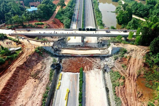 圖一、原天橋?qū)嵤┍坪筠Z然倒塌