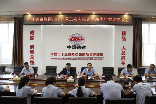 6月29日,嘹亮的國歌聲自中鐵二十三局集團(tuán)哈佳協(xié)調(diào)指揮部八樓會議室響起,掀起了指揮部慶祝建黨98周年“六個一”系列活動高潮,共度主題黨日、共同為黨慶生,激發(fā)指揮部黨員為黨旗添彩的激情。
