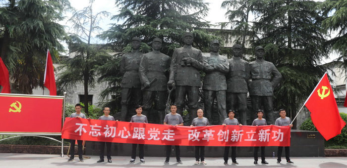 圖為黨員們合影 通過參觀紅色教育基地,重溫黨的光榮歷史,進一步堅定了全體黨員不忘初心跟黨走,牢記使命立新功的信念。最后全體黨員面對鮮紅的黨旗,黨支部書記帶領黨員舉起右手莊嚴宣誓,重溫入黨誓詞,增強了黨員的光榮感、責任感、使命感、努力將革命前輩的英雄事跡化作動力,奮發(fā)努力,愛崗敬業(yè),為企業(yè)的創(chuàng)新發(fā)展做出貢獻。