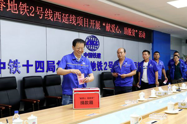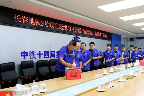 中國鐵路工程建設網(wǎng)訊(通訊員 蘭彩霞)為積極響應集團公司、公司的號召,7月4日下午3:00,中鐵十四局集團長春地鐵2號線西延項目部黨支部舉行了“獻愛心,助脫貧”捐款活動。