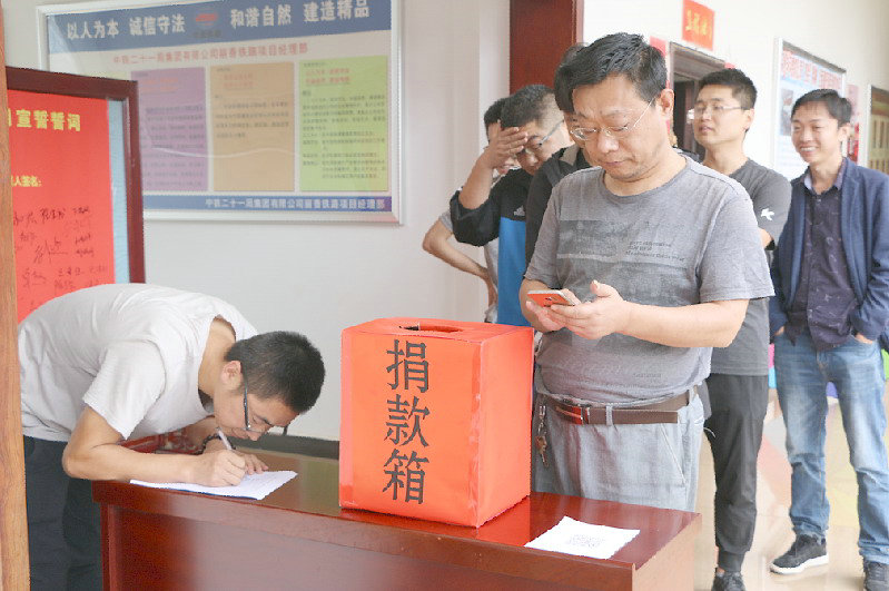 項(xiàng)目部領(lǐng)導(dǎo)帶頭捐款