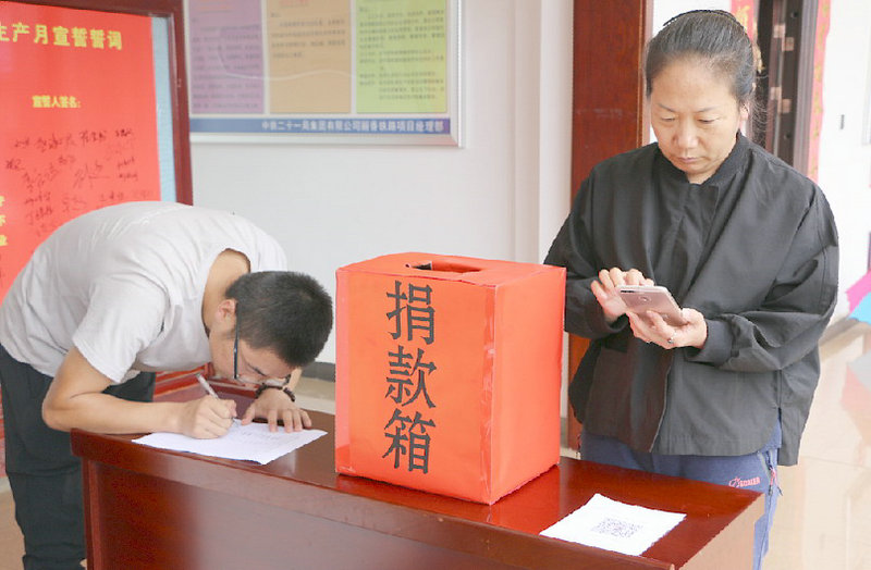 項(xiàng)目部領(lǐng)導(dǎo)進(jìn)行掃碼捐款