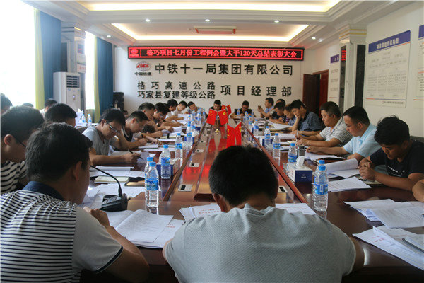 7月4日,中鐵十一局二公司格巧高速公路項目經理部在會議室召開“大干120天”勞動競賽總結表彰大會。