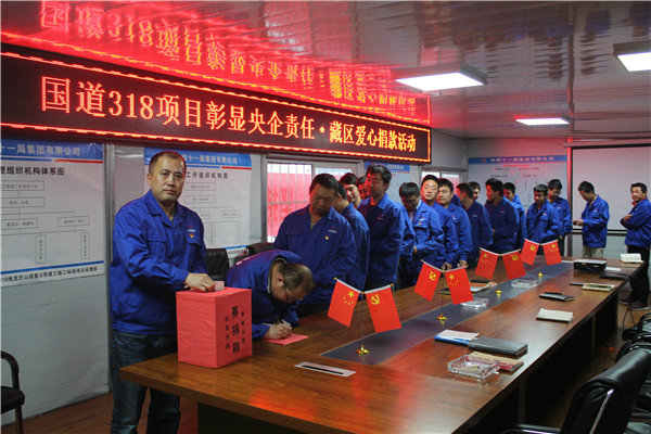 7月5日,中鐵十一局集團(tuán)國道318項(xiàng)目部積極響應(yīng)當(dāng)?shù)卣栒?,發(fā)出愛心捐款倡議,為患有腦溢血的志洛次仁同志進(jìn)行了愛心捐款活動。項(xiàng)目全體職工紛紛慷慨解囊,奉獻(xiàn)愛心。