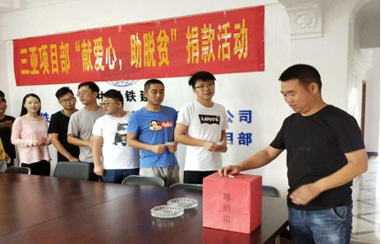 為全面完成“精準(zhǔn)扶貧,精準(zhǔn)脫貧”工作目標(biāo),加大對股份公司定點(diǎn)扶貧的河北省張家口市萬全區(qū)、河北省張家口市尚義縣、青海省果洛州甘德縣幫扶力度,早日打贏脫貧攻堅(jiān)戰(zhàn),中鐵二十一局四公司三亞項(xiàng)目黨支部積極響應(yīng)股份公司黨委和公司黨委號召,于7月7日至8日開展了“獻(xiàn)愛心、助脫貧”捐款活動?;顒影l(fā)起后,支部黨員積極主動帶頭捐款,項(xiàng)目部全體職工紛紛獻(xiàn)出自己的愛心,為定點(diǎn)幫扶地區(qū)的困難群眾伸出自己的援助之手。