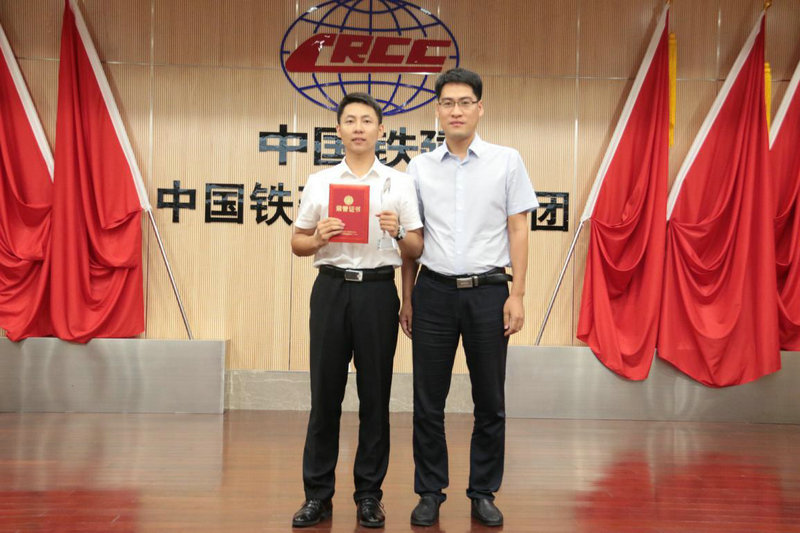 圖四、中國鐵建大橋局集團(tuán)人力資源部(黨委干部部)副部長、團(tuán)委書記孫立偉為一等獎(jiǎng)選手頒獎(jiǎng)