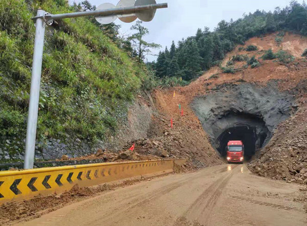 經(jīng)過全體搶險人員的共同努力,柘村隧道順利搶通。在現(xiàn)場安全人員的指揮下,搶險救援車輛、萍蓮高速公路工程施工、材料運輸車輛安全順利通行。