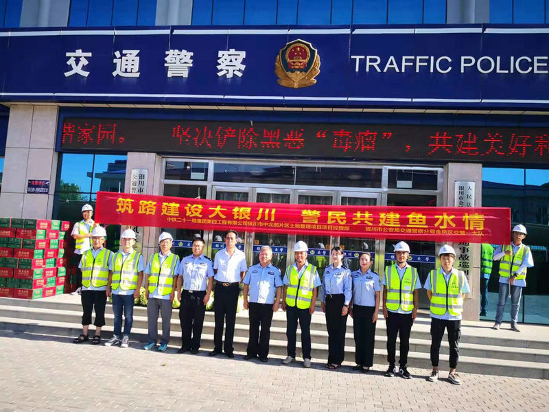 在這個揮汗如雨的酷熱季節(jié)里,為確保銀川市民出行的暢通,民警同志們頂高溫、斗酷暑,戰(zhàn)斗在城市各條交通要道上,為城市的交通安全做出很大的貢獻。為了表達對廣大民警同志辛勤工作的敬意,銀川市中北部片區(qū)土地整理項目部走進警營開展了警民共建活動,對辛勤的民警表示慰問,也希望通過這次共建活動,進一步加深相互的了解,利用銀川市中北部片區(qū)土地整理項目這個平臺,共同攜手,為銀川市的和諧、文明和繁榮發(fā)展做出積極的貢獻!
