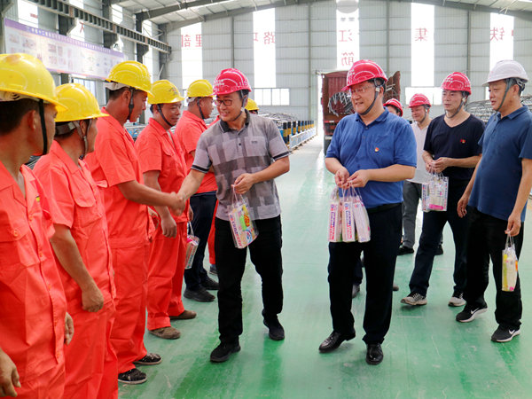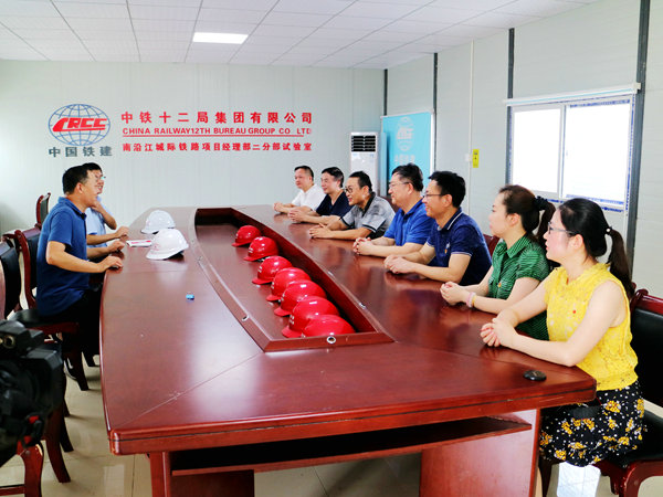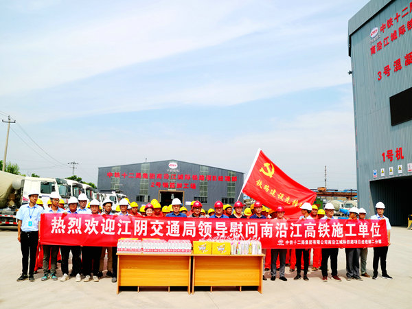 中國鐵路工程建設網(wǎng)江陰訊(通訊員 鄭建軍 張 慧)酷暑盛夏,驕陽似火。在連續(xù)多日將近40度高溫的南沿江城際鐵路建設工地,建設者們忍受著熱浪撲面的高溫依然緊張繁忙的工作著。7月31日,江蘇省江陰市交通運輸局副局長傅士才、鐵路建設服務中心主任謝曉東等領導帶隊專程前來慰問了中鐵十二局集團二分部的建設者們,他們先后為拌合站和鋼筋加工場的員工們送上礦泉水、飲料、牙食具、花露水和解暑茶包等溫馨的清涼快意,表達了一份誠摯的關懷之情。分部書記陳德東組織了歡迎儀式后,先后陪同參觀了鋼筋加工場車間和中心試驗室,并進行了親切交流。