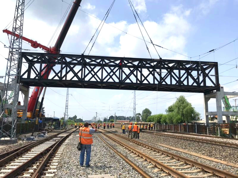 7月31日12時(shí)05分,隨著濱綏線K137+636人行天橋跨既有線架設(shè)鋼梁二級(jí)封鎖施工的順利完成,標(biāo)志著哈牡電氣化鐵路改造工程一標(biāo)段的第12座人行天橋架梁告捷。